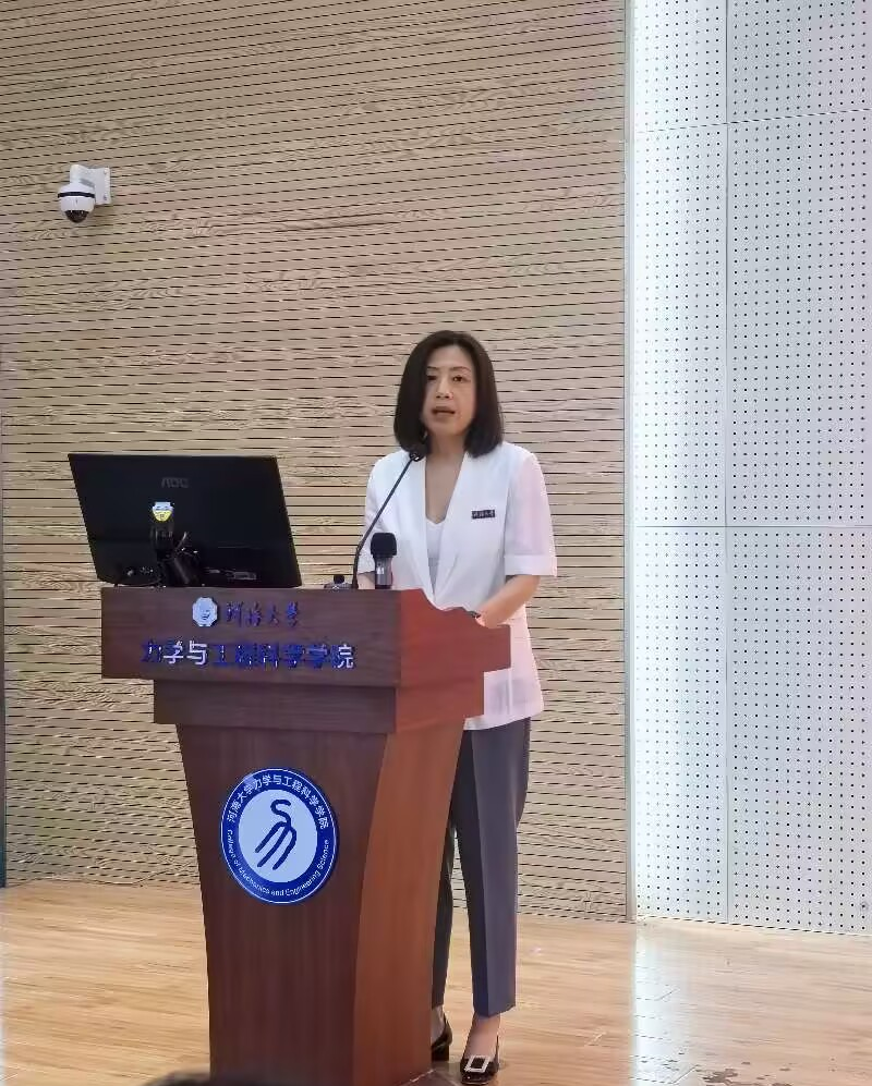 典礼在庄严的国歌声中拉开帷幕,学院党委书记任海莹向新加入学院的2025级研究生表示热烈的欢迎。她带领同学们回顾了学院悠久的办学历史,介绍了学院在学科建设、科研创新、人才培养等方面的深厚积淀与显著成果,并对新生提出三点殷切期望:一是要志存高远,勇攀科学高峰;二是要博采众长,集聚创新之力;三是要心坚步稳,坚守学术初心。